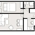 La résidence dispose d'une salle de bains avec sèche-cheveux et serviettes. Vous trouverez également une toilette séparée, une douche et une machine à laver.